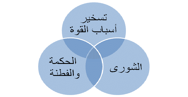 -اعتماد المشورة في إدارة شؤون الدولة ، والأخذ برأي أهل الخبرة والاختصاص من أعيان الشعب ، وحكمائهم وأفطنهم ، لا سيما في الظروف الاستثنائية الصعبة ومسائل الحرب والسلم ، والعلاقات الدولية ، و سياسات الدولة الخارجية والأمن القومي ..وهذا لعمري قمة التحضر ، وغرة نظام السلطان وسياسة الرعية .